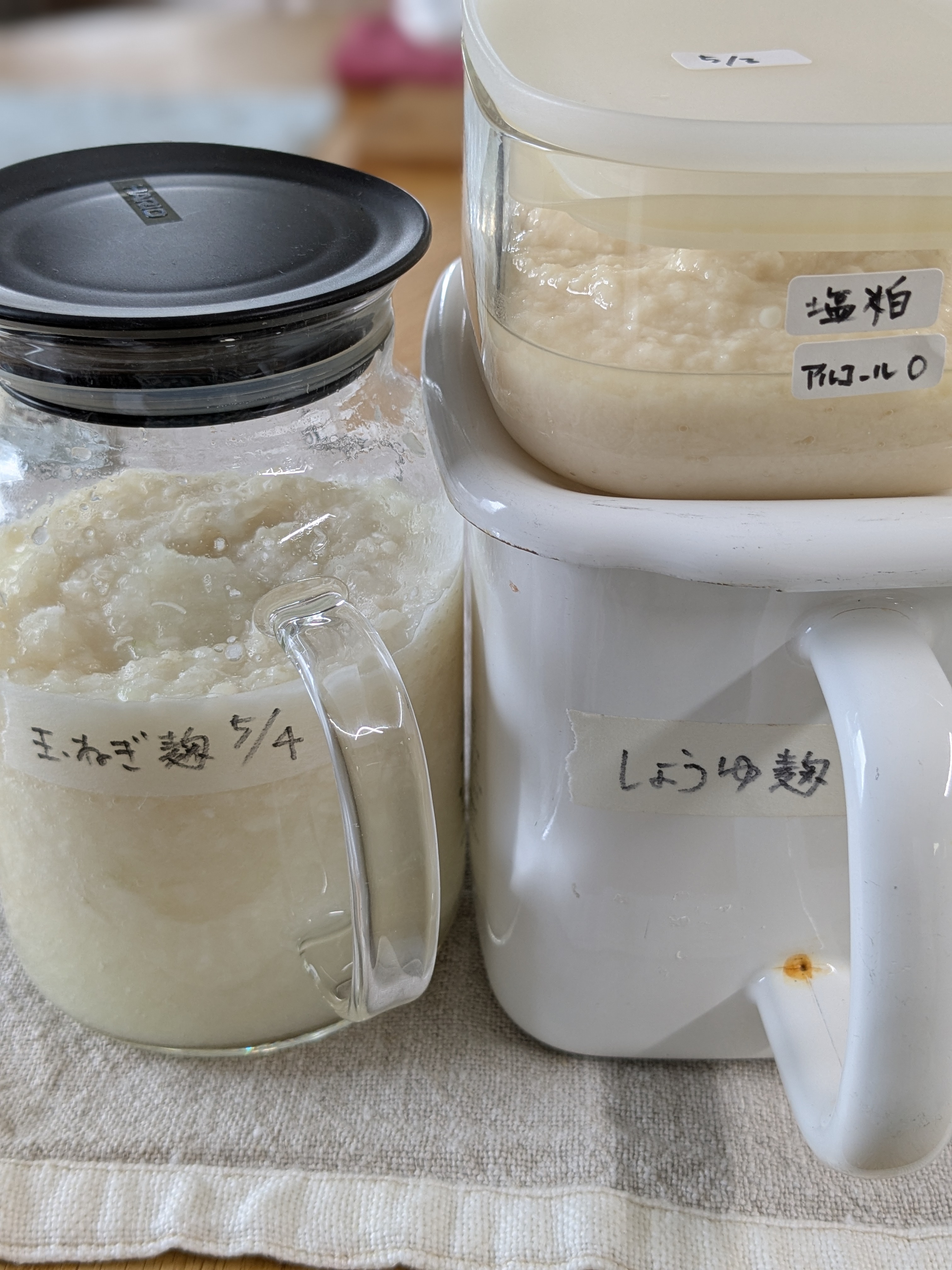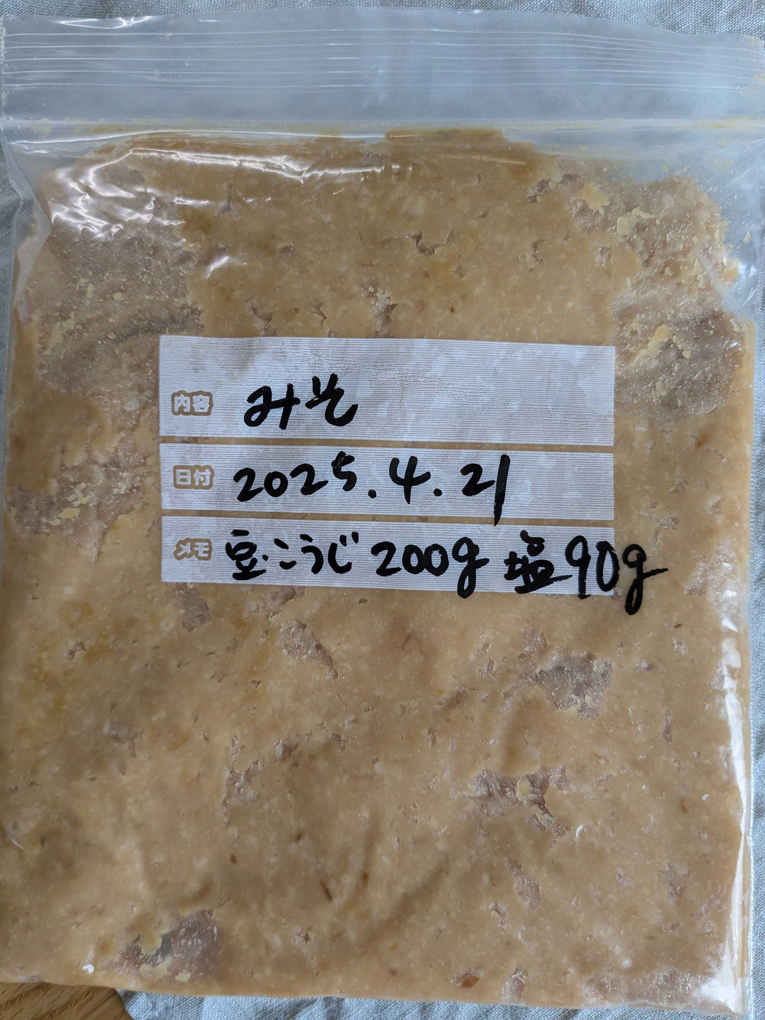 4/21に仕込んだアイラップでミニ味噌作り始めはボソボソひび割れて失敗かなと思っていたら日に日にシットリして色もついてきたので愛着が湧き毎日モミモミしてたら袋が破れてしまった(;´д`)トホホ…色もところどころ黒っぽくなっている箇所があり不穏な予感雑菌が入ったかなジップロック袋に入れ替え冷蔵庫で保管2ヶ月足らずだが色もなんとなく味噌らしくなって来たのでこれ以上痛む前に食べてしまうことにした手前味噌という言葉が実体験とともに腑に落ちた本当に手作りは美味しく感じる!しかしコクが全然足りないので酒粕を混ぜて味噌汁にしている手作り味噌セット(米みそ)20歩麹 出来上がり約4kg