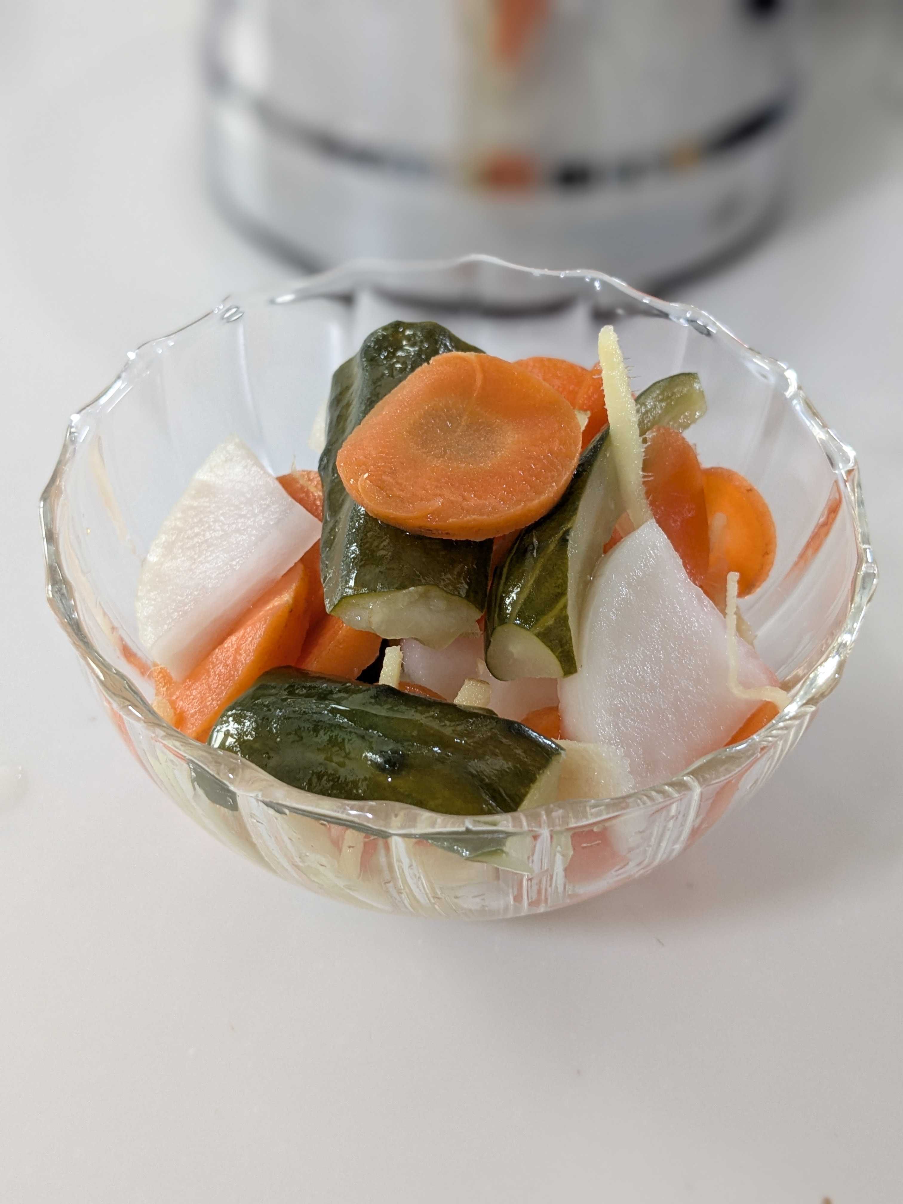 発酵食品の探求が続く日々発酵あんこはちょっともう少し…な仕上がりだったのでまたトライする予定…米の研ぎ汁と塩砂糖で作る「水キムチ」は簡単なのに軽い酸味がさっぱりして美味しくできたと思う材料費も低くこれは定番になりそう!漬け汁は2回使って残りは酸辣湯風のスープにした夏季にぴったりのさっぱり風味野田琺瑯を使えば容器を火にかけて加熱殺菌→仕込み→保存→スープ作り→保存までが1つで楽に完結できる!!レビュー特典付き 野田琺瑯 持ち手付 ストッカー 丸型S 丸型L 角型 野田ホーロー 保存容器 ホワイトシリーズ 琺瑯 ホーロー 琺瑯容器 ホーロー容器 容器 日本製 1L 1.5L 1.2L キッチン用品 調味料入れ 直火可 オーブン可 キッチン中身が見えたほうが好きなときはこのガラスタイプが良いかなカラフルな野菜の時や発酵の泡がぷくぷく見えて楽しいハリオ ビネガーズフルーツポット HARIO 保存容器 ガラス 耐熱ガラス フルーツビネガー ボトル韓国の食文化も奥深く、凄いな野菜を世界一多く食べる国だというし
