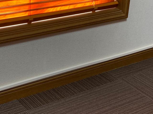 モールに光 HDMI ケーブルとアンテナケーブルを収納し、タイルカーペットを張り直しました。