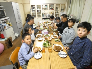 長男,次男とも3人の子持ち。長男の長男は受験勉強で帰省せず。(奥さんもお付き合いで帰省せず)長男の長女(高1)はアメリカ留学中。約1年間です!
