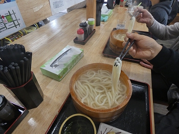 珍しく元日は休業だった麺ちゃん(麺太郎),今日から営業です。「もちろん」行列。そして「揚がる寸前の釜あげ」をゲット。