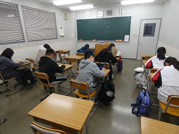 時間は勿論,本番そのままの「配布」「注意」。今日は当日の行動通りの集合時間です。