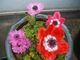 アネモネが、次々と咲いています。 もう4月も下旬ですが、椿もまだきれいに咲いているんですよ。 今日と明日は、お天気が崩れるようですね。万博公園にチューリップを見に行きたかったけど、明日はちょっと無理かなー。