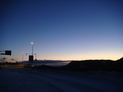 昨日の通院は朝四時半出発でしたので、真っ暗でした。そして峠のてっぺんで何となく東の空が明るくなったので撮って見ました。写真の下手な私でもキレイな景色はキレイに見えますね。