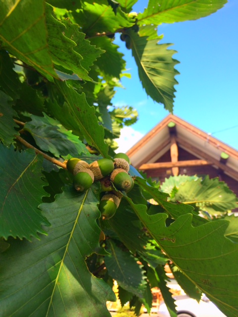 ここ一週間天気が良くて気持ちいいのです。ああ~雨はもちろん必要なんですが、天気が良いと気分まで晴れやかになっていいのです。今朝、庭にどんぐりの木があるのに気づいた。。。。っていうか、どんぐりの木があるのを忘れてたんです。しばらくの間。。。みどりのどんぐりなんて、たしか、子供のころに見たような。。。記憶が定かでない。。。たしか見た見た。かわいい感じだったので、すかさず一枚パシャっとやったのです。あまりに良い日差しだったので、ついでにもう一枚。。ログを正面からパシャっと一枚。。。今年は、冬場の薪がいつもより沢山キープすることが出来てうれしいです。ログの裏手にもこの2倍くらいの薪が積まれていて、今年は準備万端なのです。ちなみに。。どんぐり見てると、秋だな~って深く感じたんですよね~このところ、昼間は少々暑い日もあるのですが、朝夕は気温が下がって、夜も虫も少なくなってすっかり秋ですよ。秋は、一番すきな季節です。にほんブログ村