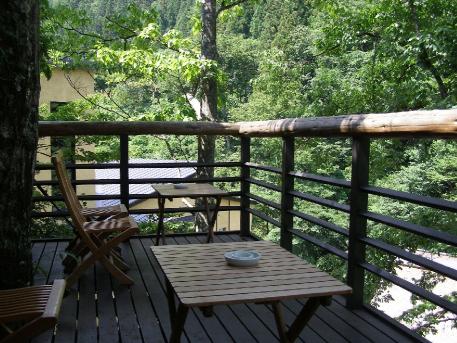 旅籠へぜひいらしてください!駐車場で車を降りて、最初の門をくぐってから部屋まで、わくわくしどおし(^。^)v 私は三階に泊まっていますが、廊下や部屋の戸は昔の豪農といった感じです。部屋の中はイロリで掘りごたつのテーブルのフローリングの部屋とたたみの部屋。全自動で乾燥機つきの洗濯機。アイロン、加湿器、薬箱、液晶テレビ二台。箱階段でロフトへ上れます。時代だんすの上に火鉢があり、梁も古い民家の柱を使っているようです。窓の外は川…清流が見えます。かやぶきの郷というように、かやぶきの民家が7千坪の敷地に配置され、江戸時代の古民具がたくさん陳列されていたり、甘味処だったりします。お風呂は滝を眺める露天や源泉掛け流しの内湯、薬草の入った薬湯、その他貸し切り風呂も。う~ん、書き切れません!またパソコンで写真をアップしましょう。ただ、ここはFOMA圏外です(T_T)明日、山を下りたら送信します。