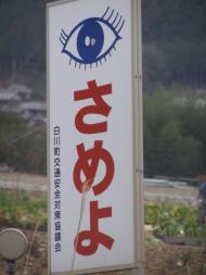 これは、今日一日で見たものたちです 車を運転しながら、思わずニヤッとしてしまい、帰り道で撮ってきました何とも単刀直入な看板が・・・ 国道沿いの立て看板です。ぱっちりお目目で「さめよ」って言われても・・・「すべるぞ!!」は、急坂の途中にありましたが、看板見て思わずブレーキ踏んじゃいそう「日本元気計画」が進行中です! 「ニチ・ゲン・ケイ」って妙な短縮語もついていますこれは・・・「若さと自信を取り戻す」のではないのでしょうか?? 自身を取り戻す・・・深い意味があるのかな? 絵の男性が二人ともアゴに手を当てて「う~ん、マンダム」って感じでしょうか(古いなぁ~)今日は、220Kmのドライブ 国道19号線→248号線→41号線そういえば、前に19号線→18号線→17号線→16号線と続けて走ったことがあります 松本から成田まで走ったときです。肩が凝って左側は、腕は痛だるくて指先までしびれています 昨日、「てもみん」へ行ったんだけど、10分じゃ全然ダメでした。肩も背中も腕も、どこを揉まれても痛くて、でも気持ちよかったけどね 10分1050円。名古屋駅近くでは、松坂屋の6階にあります。明日は、金曜日 土日も仕事はするけど、やっぱり休日は嬉しいな