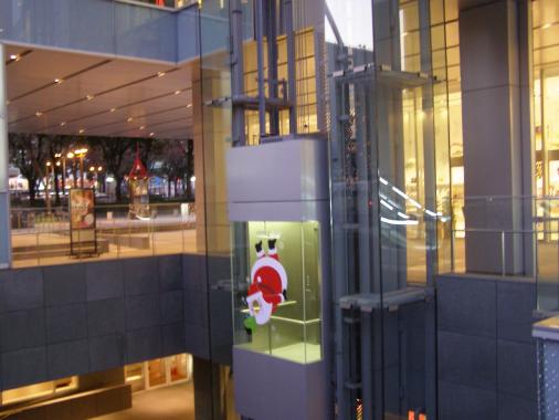 定期券を持っているので、いつも榮へ行くときは久屋大通から地下街を歩きます 歩いても5分ぐらいかな。ウインドウショッピングをして歩いて行くから、全然気にならず歩いています。今日は、たまたま用事があって地上へお~っ!初めての景色 いつも地下を歩いていたけど、上にはこんな景色があったんだ!ととっても新鮮でした。お洒落なビルのシースルーエレベーターにサンタさんがいつもと違う角を曲がれば、それはもう旅である・・・なんて言葉がありませんでしたっけ?せめて心は遠くへ飛ばしたい、そんな夜です