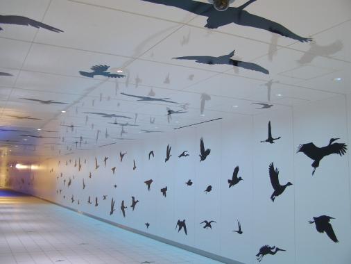 1月26日にオープンするルーセントタワーが、名古屋駅から地下道でつながりました。名古屋駅周辺は、ミッドランドスクエアが名古屋駅のまん前にできて、トヨタ本社が入居。3月には下層階にショップやレストランがオープンします。ルーセントタワーは、名古屋駅から北へ100mぐらい?(150m?)ぐらい行ったところにできました。オープンは今月26日。いろんな会社と飲食店が入る40階建てのビルです。先日、名古屋駅から地下道でつながったのですが、地下道が普通と違います 見てきました この2枚は床です。 この3枚は、スイッチなどの上に乗っているように描かれています この辺は、名古屋市内のテレビ塔とか名古屋城、名古屋駅やミッドランドスクエアですね。こんな風に、海の中だったり鳥が飛んでいたり、都心の影絵のような楽しいトンネルでした。26日にオープンしたら、こんな風に人が写らずに撮るのは難しいかも・・ですね。名古屋駅周辺は、まだ他にもビルを建てているし、まだまだ変わりそうです。名古屋はやっぱり元気なんでしょうか・・・ 最後に・・・長いトンネルでずっといた(くじらの背中にも乗っていました)ネコちゃんです。