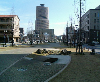 正面の高い建物が、駅に隣接しているアクトシティです。