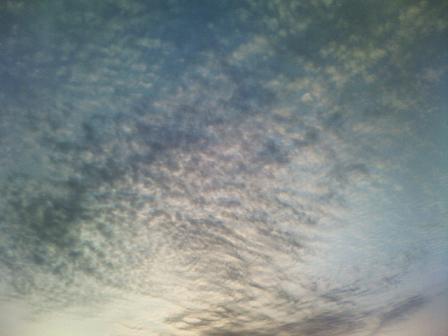 今月の空は本当に毎日パワフル。ついつい空を見上げる時間が長くなってしまいますね 今日は仕事で外出してたんですけど、行きにはダイナミックな天使の梯子が。帰りは広い空一面きれいなうろこ雲でしたでかっってかんじでしたけど(笑)どちらも車で走行中&時間に追われていたので写真は撮れませんでした。残念。 会社に戻ったころにはあの一面のうろこ雲はどこかに行っちゃってましたが、西日の近くに綺麗なのがちょっと残ってたので携帯のカメラでとりました。 あれ??なんだかあまりうろこっぽく無くなっちゃってますね 今週に入ってレイキのテキストが届いたので毎日ちょっとずつですけど予習してます未知の世界に足を踏み入れる時はドキドキわくわくですね