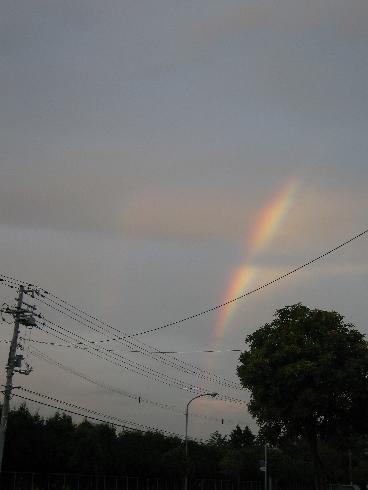 昨日は朝のドラゴン雲に始まってお空が夕方にも魅せてくれましたよ 午後から雨が降っていたのですが夕方になったら これね、2重なのです。濃い虹の左隣に薄~~いのがもう1本。 そして、 そのまま右を見たら大きなアーチになっていました。 虹って見ると嬉しいですよねで、ふと後ろを振り返ったらこんなにきれいな夕焼け空でした 皆様にもおすそわけ