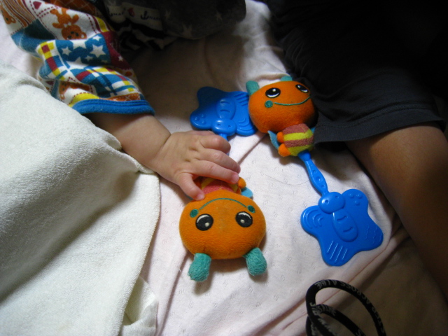 5ヶ月の息子がお気に入りのおもちゃです。 ピープルのおもちゃ2ヶ月から持てる!32gのかみかみガラガラ一番最初ににぎったおもちゃで、ホント2ヶ月くらいから握れていたんじゃないかなぁ。持つところが細いのでつかみやすいみたい。今は柄の下の青い部分をカミカミするのがブームのようです。実は我が家には同じものが2つあります。長女が産まれた時に2つもらったんですよね。赤ちゃんが両手に持ってブンブン振る姿、とってもかわいいですよぉブンブン振って体や顔に当たっても痛くないデザイン。安心して遊ばせられるおもちゃで、さすがピープルのおもちゃねーーって感心しちゃいます。 ピープルのおもちゃ2ヶ月から持てる!32gのかみかみガラガラ価格:429円(税込、送料別)