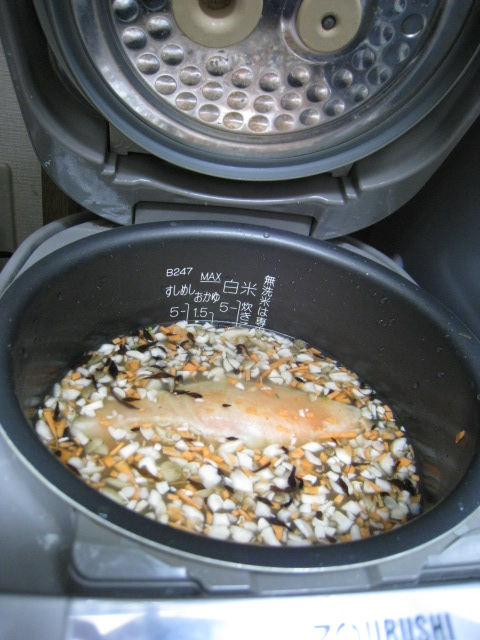 とってもいい香りがしてきました~。5時に炊き上がりを予約しておいた”鮭&ひじきの炊き込ごはん”の香り。今日はこちらのレシピを参考にさせてもらいました。にんじん、しめじ、レンコンなどの野菜を入れたから、レシピよりちょっと濃い目の味付けに。うまくできたかなー。ワクワク。●○●鮭とひじきの炊き込み御飯●○●【楽天レシピ】http://recipe.rakuten.co.jp/recipe/1320000830/あ、薄揚げを入れようと思っていたのに忘れてた!!しまった最近、1週間分の献立、またはメインに使う材料を1週間前の日曜日に決めるようにしています。なぜ、1週間も前かというと生協の個配を利用しているから。カタログで注文して、1週間後に届くからずれちゃうわけなんです。食材が余ったり、もらったり、旦那さんが飲み会になったり、何かと予定が狂う事がありますが、そこは臨機応変に。生協の個配カタログでお買い得品を中心に注文。肉、魚を1~2品ずつは注文するようにする。 ↓カレンダーに注文した材料からメインに使う食材を書き込む。思いつくときは献立も記載。 ↓(当日)楽天レシピでカレンダーに書いた材料から検索。昼食作りと同時に、夕食の下ごしらえ。 ↓17時頃。夕食を作る。だいたい流れはこんな感じです。昼過ぎくらいから「あー、今日の夕食どうしよ~」っていう憂鬱な思いをすることがなくなって、のんびり3時のおやつを楽しめます。そして、買物の回数も減りました!平日はほとんど買物に行かないですね。休日のお出かけついでに買い足すくらい。今日の夕食は、炊き込みご飯に昨日の残りのかぼちゃスープ、もやしのサッと炒め。もうほとんどできているので、もうしばらく娘と一緒にNHKの教育番組をみていようっと