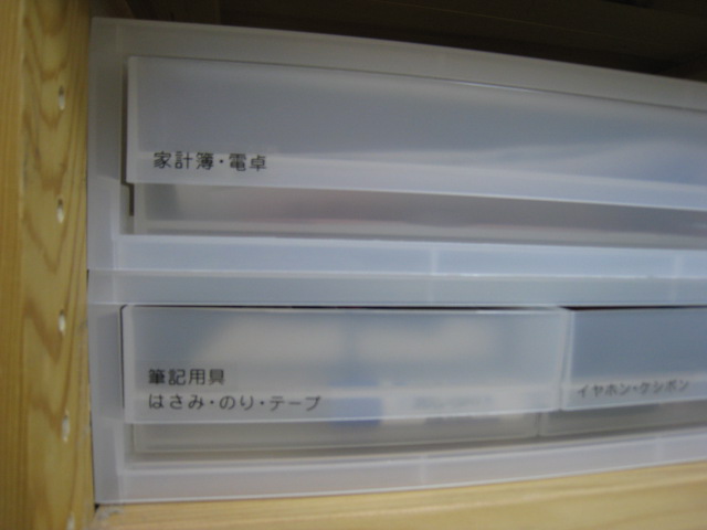 今日から旦那さんは7連休。もしかしたら、連休中に出勤が数日あるかも...と言っていて、結局確定したのは昨日。いっつもこんな感じなんですよね~。私は予定を早めに決めて、それを楽しみにしながら過ごすのが好きなのに。いつもギリギリまでわからない。だから旅行もお出かけもなかなか計画できず。仕事だから仕方ないと理解しつつも、結婚6年目に突入してもまだ慣れないでいます。さてさて、6月の出産に向けてボチボチ準備しています。その一つが収納の見直し。両家のお母さんに手伝いにきてもらうということもあって、普段家のことを何も知らない旦那さんにもわかってもらえるように、「物の住所決め」を進めてます。こちらは頻繁に使う文房具を集めてみました。無印週間の10%OFFで買った引き出し。そして、ラベリング。今まで文房具は100円のかごに入れ棚に置き、目隠しカーテンで隠していました。ズボラ夫婦なもんで、カーテンをめくるのが面倒で...出す時は必要に迫られているから出すものの、片づけるのが面倒で机の上に置きっぱなしってこともよくあったんです。今回、無印の引き出しにすることでカーテンは取り外してスッキリ。やっぱり収納アイテムって重要と思いました。カシオ 漢字ラベルライター KL-P20PKラベリングはこちらを使用中。