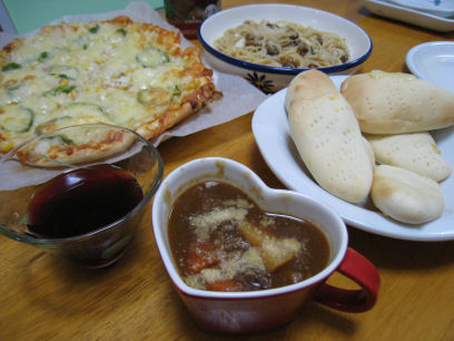 朝から冷えるなーと思っていたら、昼ごろから雪が降り始めました。夕方まで降り続いて、屋根や畑は真っ白。この土地に引っ越してきて6回目の冬。初めて雪が積もったような気がします。さてさて、本日14日はバレンタインデー何だか今年はテンションがあがって、頑張ってみました~。一足早く、昨日の夕食。ツナコーンピザビーフシチューパン(ピザ生地の残りを焼いたもの)キノコパスタハートのお皿に入っているのはビーフシチュー。はじめて作ってみたけど、旦那さんから「これは、ウマイ」とお褒めの言葉。うれし~。パスタはちょっと手抜きでピエトロの”スパドレ”を使ってます。これが、簡単でおいしいのです~~。パスタをゆでて、炒めたきのこと”スパドレ”を混ぜるだけ。ドレッシングのようにボトルに入ってて、味の濃さも調節できるのがいいところ。そして、こちらが今日焼いたチョコレートケーキ。ケーキ型、絞り出し器もなく、試行錯誤の力作(!?)です。生クリームはゴムべらでペタペタと叩くように塗りまして。食感がいいかな~と思って、板チョコを包丁で小さく割ったものをトッピング。いい感じに仕上がりました旦那さんはまだ帰っていないけど、娘のおねだりと味見ってことで、3時のおやつに1/4ほど食べてしまったごめんね、旦那さーん。
