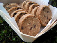 子供が友達のうちに遊びに行くというので、手土産に持たせました。稲田多佳子さんの「焼き菓子レシピ」シリーズ最新刊のレシピです。アーモンドダイスとチョコレートがたっぷり入った子供が好きそうな味 でも○ントリーマアムほど甘ったるくなく、大人にもおいしいクッキーでした。こういうアイスボックスタイプは棒状にして生地を冷凍しておけば、好きなときにサッと切って焼けばいいので、たいていは半量だけ焼いて、残りはいざというときのために冷凍するようにしています。 シフォンは「しっとりシフォンケーキ」のレシピなのですが、水分の多いこのシフォンはなかなか上手に焼くのが難しい・・・(>_