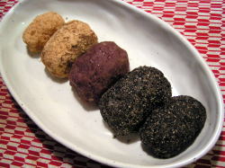 夫と息子の大好物、あんこ。先日炊いた粒あんが冷凍してあったので、もち米1合分を炊いて、おはぎにしました。おはぎはやわらかいうちに食べたい派なので、うちではもっぱらもち米を蒸すのは電子レンジのお世話になっています。1合分のもち米もうまく炊けるのでとっても便利♪うちの1000Wの電子レンジだと、ラップをして3分かけていったんかき混ぜ、さらに2分かければ炊き上がりです。あんこさえあれば、思い立ったときにおはぎができます炊き上がったらすりこ木でつぶして、手に水をつけて形づくっていくだけ。今日は外側をあんこで包んだものと、中にあんこを包み、黒すりごま+お砂糖、きなこ+お砂糖をまぶしたもの、の3色作りました。どれも普通のおはぎよりもひと回り小さめです。両端のものは子供用にさらに小さくしてあります。握り寿司くらいかな?たくさん作ると義務のように「食べなきゃ」となるのがイヤなので、少食の我が家では1合分くらいがちょうどよい感じ。私は中身があんこのほうが好きなのですが、息子はやっぱりあんこがたっぷり味わえる「外側あんこ」派(;^_^A