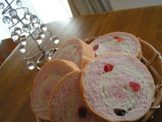 表紙のマーブル模様のパンに惹かれて、上田まり子さんのホシノ天然酵母のホームベーカリー・パンレシピを図書館で借りてきました。レシピではココア生地とのマーブルでしたが、製菓材料のストロベリーパウダーとドライストロベリーが残っていたことを思い出し、水で溶いたパウダーと、小さくカットしたドライストロベリーを加えたピンクのパン生地にしてみました。なかなか思うようなマーブル模様にはなりませんでしたが、お菓子では使い切れなかったストロベリーパウダーの使い道が見つかって、よかったパウダーは加減が難しく、今回はちょっと入れすぎて、色がかなりどぎつい・・・(@_@;)色ほど味は強烈ではなく、ほんのりいちごの香りがするパンです。こちらは先日焼いたグラハムクレッセント。粗びきのグラハム粉がたっぷり入っています。こういうパンはサンドイッチにするのがぴったりこれも同じ本のレシピで、ハイジの白パン。なんてことのないシンプルなパンですが、娘の大好物で、何もつけずにそのままパクパクこのパンがあると、おやつの時間にもこれを食べますホシノ天然酵母のホームベーカリー・パンレシピドライフルーツ ストロベリー