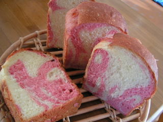 ホシノ天然酵母のホームベーカリー・パンレシピを参考に、またメッシュ型で焼きました。レシピでは練乳入りの白い生地にドライいちごを散らしていましたが、半量にストロベリーパウダーを練りこみ、ピンクの生地にして、くるくると2色の渦巻きにしてみました。前回、どぎついピンクになった反省から、今回は少量にしてみたのですが、今度は少なすぎて、色がぼやけてしまいましたなかなか加減が難しい・・・。このパン生地、糖分は練乳のみなので、とてもしっとり柔らかく仕上がります。そのまま食べてもほんのり甘くて、ほよほよした感触がおいしいのですが、メッシュ型で焼くには少々不向きな配合だったかも。焼成後、ちょっと腰折れぎみになってしまいました。菓子パンとして、小さめに成型したほうがよさそうです。* * * * * * * * * * * * * * * *そろそろいちご関連商品が出始めたようですストロベリーパウダー 95g今回使ったのはこのパウダーです。少量でもしっかり色と香りが出ます。【春季限定】コーチングチョコ フラット 粒々いちご 400gこれは今春買って、とてもおいしくかったので、リピートする予定。【期間限定】ジュレシート とちおとめ 600g今シーズンはこれにチャレンジしてみようかと・・・。ドライストロベリー100gそのまま食べてもおいしい♪