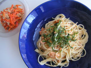 本日のランチ。夫と息子が午後イチでラグビー観戦に行くというので、ササッとできるお手軽なスパゲッティにしました。このスパゲッティはゆでたスパゲッティに、生クリームと生うにを合わせるだけなので、ホントに簡単。唯一の欠点は材料費がかかることそれさえ除けば、すぐできる上にとっても美味しく、言うことナシ。子どもたちも大好きであっという間に食べます