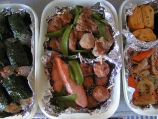 今日は朝から紅葉狩りに出かけました。去年は食事をするところがなくて困ったので、今年はお弁当持参に。お菓子やパンをあれこれ作るのはちっとも苦にならないのですが、実はお弁当はちょっと苦手。朝ごはんの支度をしながら、限られた時間&スペースで、ちょこちょこと作らなくてはならないのがどうもダメなんですよね(;^_^A2人目が生まれるまで作っていた夫のお弁当も、息子の幼稚園弁当もかなりワンパターンだったし、もちろん、キャラ弁なんて、作ったこともありません・・・・・・というわけで、単に普段のおかずを詰めただけのお弁当です。・里芋と鶏肉の煮物・焼き塩鮭・キャベツとにんじん、油揚げのごま酢和え・桜海老と万能ねぎの卵焼き・おむすび3種(たぬき(天かす&天つゆ)、しらす&ごま、鮭)お天気にも恵まれ、たっぷり紅葉を満喫してきました。以前は紅葉にはあまり興味を示さなかった息子も、今年は景色を楽しみ、自分の好きな風景を写真に撮ったりしていました。去年はおんぶばかりだった娘も、今年は落ち葉をしゃかしゃかいわせながら、お菓子で釣らなくても、しっかり歩き通しました~