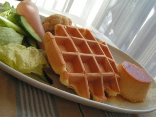 珍しく息子が発熱して、ダウン食欲はないけれど、プリンなら食べるというので、せっせと作りました。朝食のワッフルにもプリンを添えて、カラメルソースをつけながら食べました。プリンもワッフルもキャラメルとカカオのお菓子のレシピで、焼いたもの。プリンは生地にも少量カラメルソースが入っていて、ほんのりベージュ色。低温でじっくり湯煎にするので、スも入らずとてもなめらかでおいしかったーー。プリン星人の息子も大満足。ワッフルは、ベーキングパウダーを使った軽いタイプです。甘さ控えめなので、こうして野菜と組み合わせても違和感なく食べられますワッフルの分量が4枚分と少なめだったので、ふと「モッフル」を思い出し、切り餅を刻んでワッフルメーカーで焼いてみました。もっちりするかと思いきや、さくさくと軽い感じになるのですね~。こちらは砂糖じょうゆで食べました。スナック代わりに、おやつにもよさそうです。キャラメルとカカオのお菓子お手頃価格で大人気♪ チャーミーママ ワッフルメーカーワッフルメーカーは電気のものと直火用と持っています。直火用はキャンプの朝ごはんにも重宝(*^_^*)ホットサンド、ワッフル、鯛焼き、焼きおにぎりが楽しめる!1台4役!「マイティサンドプラスワン」うちのはたい焼きプレートがついていないので、コレ、ちょっと気になってます・・・。