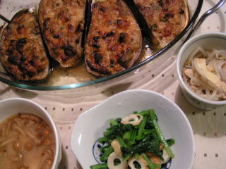 米なすを買ったので、そのカタチを生かしたお料理にしたくて、中身をくり抜き、器にしてグラタンにしました。なすの中身をくり抜くのにはグレープフルーツナイフを利用。それでもキレイにくり抜くのはなかなか難しかったです(;^_^Aくり抜いた中身とシーフードミックス、玉ねぎをあわせて炒め、白味噌ベースで和風に味付けしました。なすの器は油で揚げて火を通し、具を入れて、オーブンへ。見た目はグラタンですが、味は全くの和風です♪白味噌は赤味噌とあわせてお味噌汁に使うので、小さいサイズのものを常備しています。ちょっと甘めの白味噌は、具によってあわせる量を加減しています。メインが濃い味なので、副菜はあっさり系の2品。小松菜とちくわの塩炒め、もやしと油揚げのさっと煮。両方とも献立教室のレシピを参考にしました。地味ながら、もやしの煮物がなかなかのヒットもやしと油揚げを白だしベースの煮汁で煮ただけなのですが、油揚げのうまみでもやしのクセも気にならずにおいしく食べられました* * * * * * * * * * * * * * * *今日何気なく借りたCDですが、なかなかよかった~。最近の曲も多いですが、R35世代には「懐かしい~~!」という曲も入ってます。「赤いスイトピー」とか「M」なんて、何年ぶりに聴いたんだろう・・・ピアノデイズ~君と聴いたラブソング~