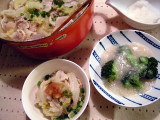 たかこ@caramel milk teaさんのおもてなしランチ会のらくちんメニューブックのレシピを参考にしました。レシピでは薄切り肉を使っていましたが、豚バラ肉のかたまりで塩豚を作ってあったので、それを薄く切って使っています。塩豚にすると余分な水分が抜け、豚肉の旨みが凝縮されるので、ごく普通の豚肉がワンランクアップするような(*^_^*)豚肉の旨みを吸い込んだ白菜もおいしくて、た~っぷり食べられます。副菜はブロッコリーのカニあんかけ。といっても、カニはお手頃なほぐしみの缶詰なので、色合いはちょっと地味です。もう少し豪華な缶詰だと赤と緑のコントラストがキレイに出そうですが(;^_^Aなんとなく中華つながりで思い出して作ってみたれんこんもち。栗原はるみさんのレシピです。大根もちは夫の大好物なので、たまに作っていましたが、れんこんは初めて。電子レンジを活用するので、さほど手間はかからないのですが、500グラムのれんこんをすりおろすのがちょっと大変でしたでも、大根もちよりももっちもちで、おいしかったですたかこ@caramel milk teaさんのおもてなしランチ会のらくちんメニューブック栗原はるみ haru_mi (ハルミ) 2008年 01月号 [雑誌]