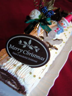今日は実家の母も招待して、我が家でささやかなクリスマス・パーティーをしました。とはいっても、メインは毎年ローストチキンだし、ケーキもこのところ息子の好きなロールケーキ(ブッシュドノエル)と決まっているので、あまり頭を悩ますこともなく、あとは前菜やスープをササッと作りました。ちなみに去年のクリスマス・メニューはこちら、一昨年はこちらからどうぞ。今年のブッシュドノエルはココア生地に、コーヒーリキュール入りのシロップをうち、マスカルポーネ+生クリームをあわせたクリームを巻いた、ティラミス風です。ちいさな焼き菓子とおすそわけスイーツのレシピを参考にしました。今回はクリスマス仕様なので、表面にもクリームを絞り出し、チョコプレートやメレンゲのスノーマンなどでデコレーション別立ての軽い生地と、お砂糖はほとんど入っていない、あっさりしたクリームがよく合いますこの生地を覚えてから、ココア生地の苦手意識が少し解消されました。作りやすくて、ほんとに軽~くて食べ心地のよい生地が焼けます(*^_^*)メインのローストチキンです。今年はスタッフィングはせず、にんにくとローズマリー、塩・こしょうだけで勝負(;^_^Aカリカリの皮と、ジューシーにふっくら焼きあがったお肉が丸焼きならではの醍醐味♪前菜のカナッペはクリームチーズ&いくら&生ハム&クレソンをのせたもので、もう一皿はトマト+スライスチーズ+自家製ミートソース、甘長トマトを豚バラ肉で巻いて、トースターでこんがりと焼いたもの。サラダは大根&帆立&しそに、昨日のれんこんとさつまいものマリネサラダ。あとはキャベツのクリームスープです。今日は夫以外誰もお酒が飲めないので、今日はココ・ファームのスパークリングジュースで乾杯ワイン用のぶどうを使っているので、香りはまさにワイン♪甘く芳醇な香りに、ゆったりした気分になりました◆スパークリング・ジュース ココファーム・スパークリング・ロゼ