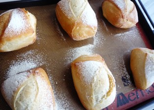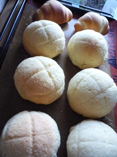 先日メロンパンを作った時に、クッキー生地を半分冷凍保存しておきました。バターロールの生地を12個分仕込み、半分はその冷凍クッキー生地を使ってメロンパンに。レシピは私が一番最初に買ったパンのレシピ本(竹野豊子さん著)を参考にしました。かなり古い本ですが、この本のバターロール生地はとてもおいしくできるので、今でも時々使っています。メロンパンのトッピングにはグラニュー糖ではなく、オーストラリア土産の粗糖を使いました。少量でとてもコクのある甘みが出ます♪粗糖 500g日本製はけっこうお値段がします~(^_^;)
