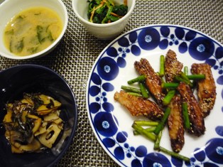 手羽中の揚げ煮(てんきち母ちゃんちの毎日ごはん(2)より)れんこんと糸昆布のしそきんぴら(私の贈りものより)ちぢみほうれん草と桜エビのにんにく醤油和え(てんきち母ちゃんちの毎日ごはん(2)より)大根とわかめのお味噌汁 * * * * * * * * * * * * *この揚げ煮は手羽中を買ったらほぼ80%はコレにするというくらい、お気に入りのメニュー。バルサミコ酢を使うのでコクのある酢豚のような味付けになっています(^o^)夫によると、お酒のおつまみにもぴったりの模様。お皿は先日買った白山陶器のもの。和食器なんですが、どこか北欧っぽい印象もあり、守備範囲の広いお皿です。なんだか写真の色が冴えないですが、このお弁当写真を撮っている時間帯は、まだ外は真っ暗息子を送り出して一息つくと、南東向きの我が家のキッチンからは毎日朝焼けが拝めます(^_^;)冬の朝焼けはとてもキレイなんですが、寒い白山陶器 ブルーム プレートL リースご飯にかけてもそのまま食べても美味しい【韓国のり】味付けのり フレーク 岩海苔ザバン 30g 【韓国海苔】【韓国食品】お弁当用に買ってみました。でもどちらかというと、そのままおつまみっぽく食べるほうが向いていそうでした。