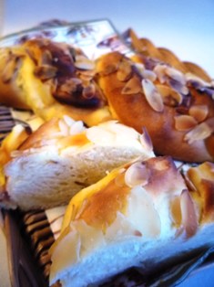 ほんのりしあわせ。おうちパンのレシピです。ココア入りの生地にチョコチップを散らし、二つ編みにして成型。生地自体は甘さ控えめなので、チョコチップがほどよく甘く、食べやすいパンです。こちらはパン教室レシピのグラハムブレッド。粗挽きのグラハム粉がたっぷり入っています。素朴な見た目ですが、はちみつ入りでほのかに甘いパン。クリームチーズといちじくジャムを塗っていただきました♪このジャムはオーストラリアで買ってきたもの。サンダルフォーのジャムは日本のスーパーでもよく見かけますが、いちじくはまだ見かけたことがないような・・・。果肉入りで味も濃く、いちじくらしい味と食感がたまりません日本ではあまり需要がないのかなーー。美味しいのに・・・(^o^)