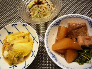豚バラ肉と大根の煮物白菜と卵とじ春雨サラダ * * * * * * * * * * * * *