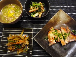 鶏肉の塩麹漬け焼き長芋と三つ葉のたらこ炒めごぼうとにんじん、ピーマンのきんぴら白菜と豚肉のスープもてなし上手より) * * * * * * * * * * * * *お正月明けから仕込んでいたこの冬二回目の塩麹。ようやくいい感じに発酵してきたので、まずは鶏肉を漬けこんでみました。軽く拭った後、オーブンで20分ほど焼いています。前回作った時は魚と野菜にしか使わなかったので、お肉を漬けるのは初コクのある塩豚ならぬ塩鶏という感じの仕上がりでした簡単にできるし、あっさりしていながらも旨みがあって美味しい~乾燥米麹
