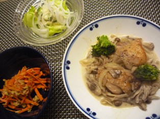 手羽中のカレーグリル(てんきち母ちゃんのあっという間のおかずより)キャベツと小松菜の煮浸し(圧力鍋のもっと絶品おかずより)大根とひじき、かにかまのごまマヨ和え * * * * * * * * * * * * *鶏肉の味噌漬け&ブロッコリー(朝つめるだけ!楽ラクお弁当bookより)かぼちゃのカレーじゃこ炒め(毎日がたのしくなる塩麹のおかずより)きゅうりとセロリ、にんじんお酒粕和え(麹と酒粕のおいしい食卓より)鶏もも肉はお弁当に便利な食材ですが、冷凍すと解凍に時間がかかるので、ついつい豚小間&牛小間に頼ってしまいます。そこで、鶏肉を買ってきたときに調理して冷凍するパターンにしてみました。鶏もも肉3枚のうち、2枚はソテーして、1枚は照り焼きに、もう1枚は味噌+お砂糖+みりんの中へ漬け込み。冷ましてから小分けにして冷凍しました。残りの1枚は観音開きにして、大葉とコチュジャン、スライスチーズをはさんだ状態で、冷凍庫へ。これでしばらくラクができる~(*^_^*)