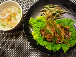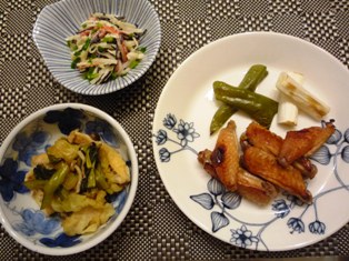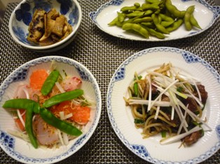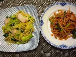 塩麹焼きそば(麹と酒粕のおいしい食卓より)酒粕入り豚キムチ炒め( 〃 ) * * * * * * * * * * * * *朝から出掛けてお花見をして、新宿高島屋でランチと買い物をして帰宅したのが夕方。人混みですっかり疲れてしまった上、お昼を外食でしっかり食べたので、夕食は簡単に済ませました^^;焼きそばの具はかまぼこ、キャベツ、青梗菜、長ねぎというヘルシー系。豚キムチはにんにくの茎入りでパンチが効いていますが、酒粕のおかげで若干マイルドに♪