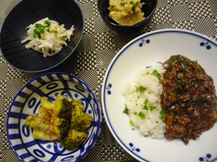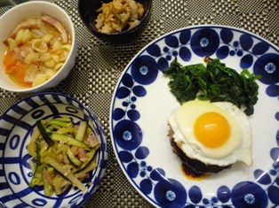 ハッシュドビーフ(オレンジページレシピより)コールスロー * * * * * * * * * * * * *夫飲み会につき、2品で晩ごはんの日です^^;エリンギとしめじ、マッシュルームときのこ類がたっぷり入ったハッシュドビーフに、市販のカンタンいろいろ使えま酢を使ったコールスロー。どちらも作り置きができるので、日中子供たちが学校の間にササっと作り、夕方はのんびりしました夕方はどうしても気ぜわしくなるので、なかなかゆったりした気分で子供たちと過ごすのが難しい。夕食の準備が終わっていると、子供にも余裕を持って接することができて、ちょっと自分もラク豚肉とピーマンのザーサイ炒めひじきの煮物入り卵焼きなすときゅうり、プチトマトの塩麹漬け * * * * * * * * * * * * *今週からまたお弁当作りが復活!1ヵ月ぶりなので、なんだかまだペースが戻りません(+o+)手際が悪くてバタバタしてます
