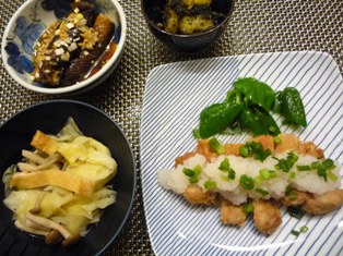 いわしのつみれ揚げ なすとじゃがいもの素揚げ白菜の炒め蒸し(若林三弥子の蒸しいため完全マスターより)厚揚げの明太子チーズ焼き(てんきち母ちゃんレシピより) * * * * * * * * * * * * *いわしは手開きにして、長ねぎ、生姜と一緒にフープロにかけ、味噌、酒、醤油などで調味。ささがきにしたごぼうとにんじん、小麦粉、卵を加えて揚げました。白菜をストウブに入れ、少量のだし、油、塩を加えてフタをして加熱。野菜の旨み、甘みが引き出されて、シンプルな調理方法なのにとてもおいしくなります♪仕上げにカンカンに熱したごま油をジューッと回しかけて出来上がり。白菜1/4株があっという間になくなります(*^_^*)
