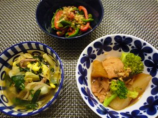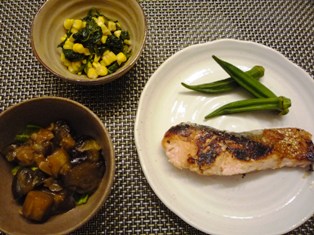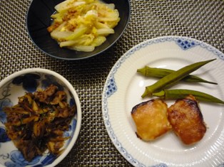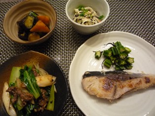 ぶりの塩麹焼き&オクラの塩昆布和え青梗菜と牛肉の塩麹炒め(麹と酒粕のおいしい食卓より)なすとかぼちゃの蒸しいため(若林三弥子の蒸しいため完全マスターより)大根とかにかま、ひじきのごまマヨ和え * * * * * * * * * * * * *
