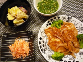 ポークチャップ(つくりおきおかずで朝つめるだけ!弁当(2)より)さつまいものミルク煮にんじんの塩麹和え(毎日がたのしくなる塩麹のおかずより)モロヘイヤのガーリックスープ(小林カツ代さんレシピ) * * * * * * * * * * * * *ポークチャップは、豚生姜焼き用のお肉にケチャップと中濃ソースを使った懐かしの味つけ。娘の好きな味つけですが、高熱でダウンしているため、全く食べられず。さつまいもは牛乳とお砂糖、バターだけで煮ています。あっさりめのスイートポテトのような味です。にんじんの塩麹和えは簡単でおいしいので、何度もリピートしています♪マヨネーズ×塩麹で味付けするのですが、仕上げに柚子茶を加えてさらに風味をアップしています。こうすると、マヨネーズの量が控えめでもOK。わが家の夏の定番スープ、モロヘイヤのガーリックスープ。粘りが出るくらいまで刻んだモロヘイヤとにんにくのみじん切りを炒め、だし汁を注ぎ、溶き卵を流し入れ、薄口醤油で調味。風邪ひきの娘もこれはおいしそうに飲んでいました(^_^)