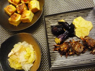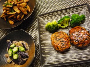 豆腐のハンバーグ(オレンジページレシピより)ごぼうの甘辛揚げ(てんきち母ちゃんレシピより)なすの塩麹白みそ焼き(塩麹&麹レシピより) * * * * * * * * * * * * *ハンバーグというよりもがんもどき風のおかず。水切りした木綿豆腐が丸々1丁分入っています。つなぎ程度の鶏ひき肉の他、みじん切りのにんじん、大葉、ひじきなども入り、具だくさん。火を通したあと、照り焼きにするので、子供たちにも大ウケの味になりました。もはや我が家の定番となった、ごぼうの唐揚げを甘辛いたれに絡めたもの。これは大皿盛りにしても、次々手が伸びて、あっという間になくなる人気メニューです。なすはレシピでは炒めるだけでしたが、蒸しいためにしてみました。仕上げに白味噌と塩麹を和えたものをかけて出来上がり。白味噌×塩麹の組み合わせは初めてでしたが、なかなか美味