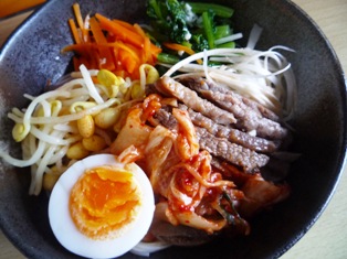 本日のお昼ごはん。今週は夫も休みなので、毎食4人分・・・^^;でも旅行前なので、あまり余分なストックはしたくない。毎食、冷蔵庫とにらめっこです。おうちでカンタン!韓流ごはん(2)のレシピです。本来は冷麺で作るのでしょうが、この本では入手しやすいそうめんを使っています。フツーのそうめんに飽きた時にもいいです具は甘辛く味付けした牛肉、塩麹に漬けた半熟卵、キムチ、にんじん・豆もやし・小松菜・長ねぎのナムルです。たれは市販のめんつゆに酢、お砂糖、コチュジャンを合わせています。野菜もたっぷりとれるので、ワンプレートのお昼ごはんにぴったり【送料無料】おうちでカンタン!韓流ごはん(2)本格的な韓国料理というよりも、日本人向けにアレンジしたちょっと韓国風のおかずといった感じのレシピが中心なので、材料も手に入りやすいものが多く、活用しやすいです(*^_^*)塩麹を使ったレシピなどもあります♪