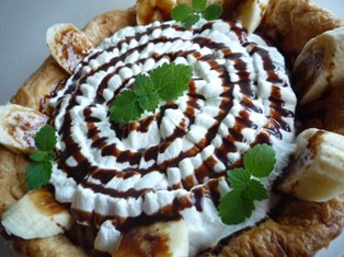 実家への手土産で焼きました。たかこさんの12ヶ月のかんたん焼き菓子のレシピです。レシピではカスタードクリームでしたが、仕上がり際に板チョコを溶かしこんで、チョコカスタードクリームにしました。練りパイ生地とはいえ、この暑い季節にパイ生地はかなり危険生地はフープロで作ったのですが、冷水ではなくもう氷を直接入れました伸ばした後も再度冷蔵庫でしっかり冷やしてから焼きました。結果、なんとかサクッとした食感に(^_-)-☆見えにくいですが、生クリームの下にチョコカスタードが詰まってます(*^_^*)チョコカスタードの中にもバナナが潜んでいます。チョコ×バナナは最強の組み合わせ