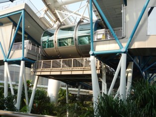 初日はまず観覧車に乗って、シンガポール全体を見学。ディナーもできる20人乗りくらいの大型観覧車です。朝早くてすいていたので、我が家だけでこの広い観覧車を占有(^_^)一番上まで来ると、かなりの高さがあります。高所恐怖症の息子は写真を撮るのも恐る恐るでした・・・^^;お隣はディナー用の観覧車でした。お料理のセッティング中は観覧車をいちいち停めるとなると、かなりの時間がかかる・・・?マリーナベイサンズはやはり目立っていましたなんとも大胆なデザイン!猛暑の中、てくてく歩いて植物園へ。午前中から、湿気の多いべっとりした熱帯の暑さです(@_@;)中に入れば涼しい~。とりあえず、強烈な蒸し暑さから逃れられて、植物よりも涼しさに感動でした屋内に作られた人工の滝。かなり大がかりで見ごたえがあります。水好きの娘、大喜び