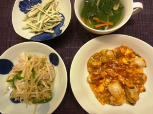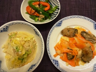 牡蠣と長芋、にんじんのソテー白菜のおかか卵とじピーマンとツナの塩昆布きんぴら * * * * * * * * * * * * * 牡蠣のソテーは翌日パスタに♪ 今日は友人と今年初の外テニス。私以外の友人は受験生を抱えているので、ママもお疲れさま・・・ということで、焼き菓子の差し入れ。 夜は息子の学校のPTAの新春交歓会へ。 幹事校が女子校だけあって、和服のお母様方が多く、華やかでした