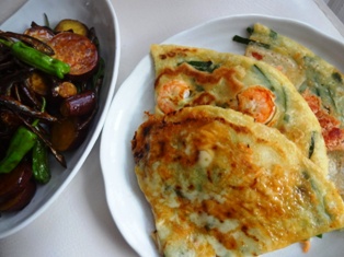 休日のお昼ごはん。オットギのチヂミ粉で作りました。基本はニラ入りの生地で、焼くときに、エビ・薄切りのお餅&チーズ・お餅&明太子バージョンに。副菜はなすとピーマンの味噌炒め。豚肉も加えて、ボリュームアップ! お餅&チーズ♪ ポークソテー ガーリックパセリソース&ポテト大根ステーキ チーズのせほうれん草とトマトの塩麹和え * * * * * * * * * * * * *