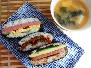 パン教室の先生からおにぎらずの話を聞き、お昼ごはんに早速チャレンジしてみました(*´∀`)ノ おにぎりよりもご飯がふわっとしていて、海苔巻きよりも簡単!ご飯の量も少なくて、具がたっぷりはさめ、見た目にもキレイ!!といいことづくめです。 本日の具材はおかかごはんにスパム&チーズ&きゅうり、白ごはんにスパム&卵&きゅうり、ベーコン入りきんぴらごぼう。 酢豚白菜のクリーム煮揚げなすとトマトのゴマ醤和え * * * * * * * * * * * * * 本日の朝ごはん。トーストしたライ麦パンに自家製パテ、クリームチーズにブラックオリーブ♪ * * * * * * * * * * * * * 【楽天ブックスならいつでも送料無料】おにぎらずの本 [ オガワチエコ ] パン教室の先生オススメの1冊。早速買ってみました