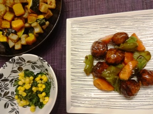 肉団子の甘酢あんかけほうれん草とコーンのネギ醤和えれんこんとかぼちゃの素揚げ カレー塩和え * * * * * * * * * * * * * ほうれん草のサラダには、友人の福山さんのライブ土産のネギ醤を使いました。この調味料は、パスタやお肉の漬け込みにとても便利なのですが、今日はオーソドックスにサラダに。