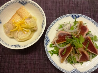 かつおのたたきサラダ白菜と豚しゃぶ肉のゆず風味煮 * * * * * * * * * * * * * 最近ハマっている塩バターロール。先日近所のパン屋さんで買った五穀塩パンがとてもおいしかったので、今日の生地は白ゴマをたっぷり加えてみました♪